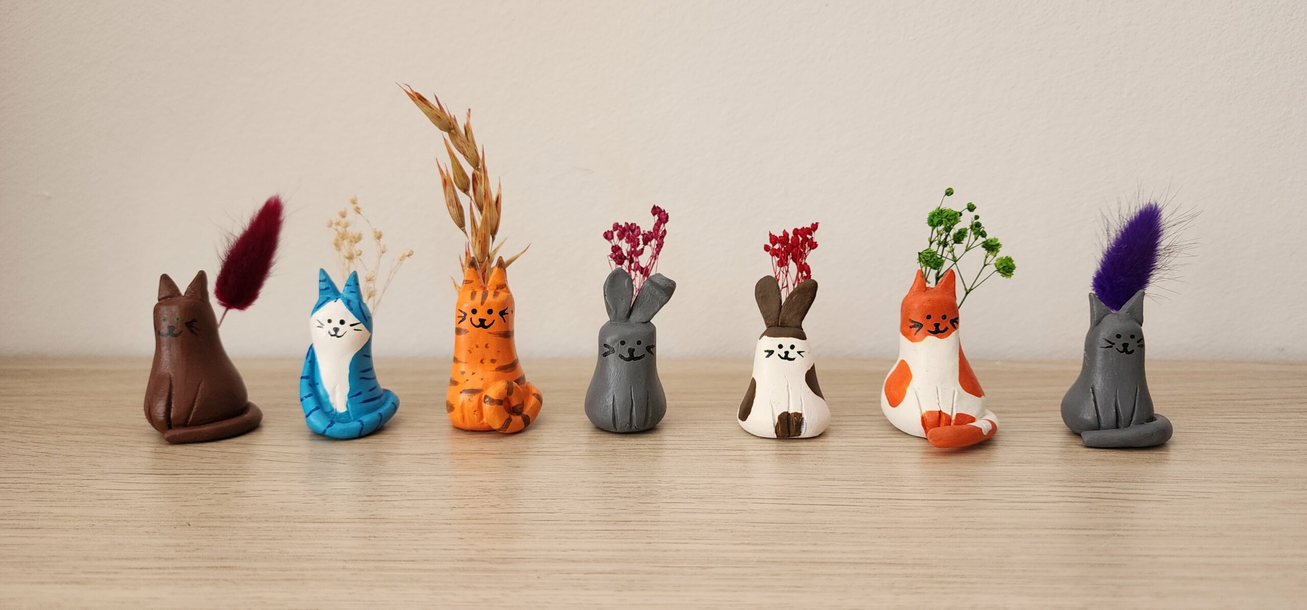 Chats & Lapins Fleuris XS – Mini décorations florales faites main