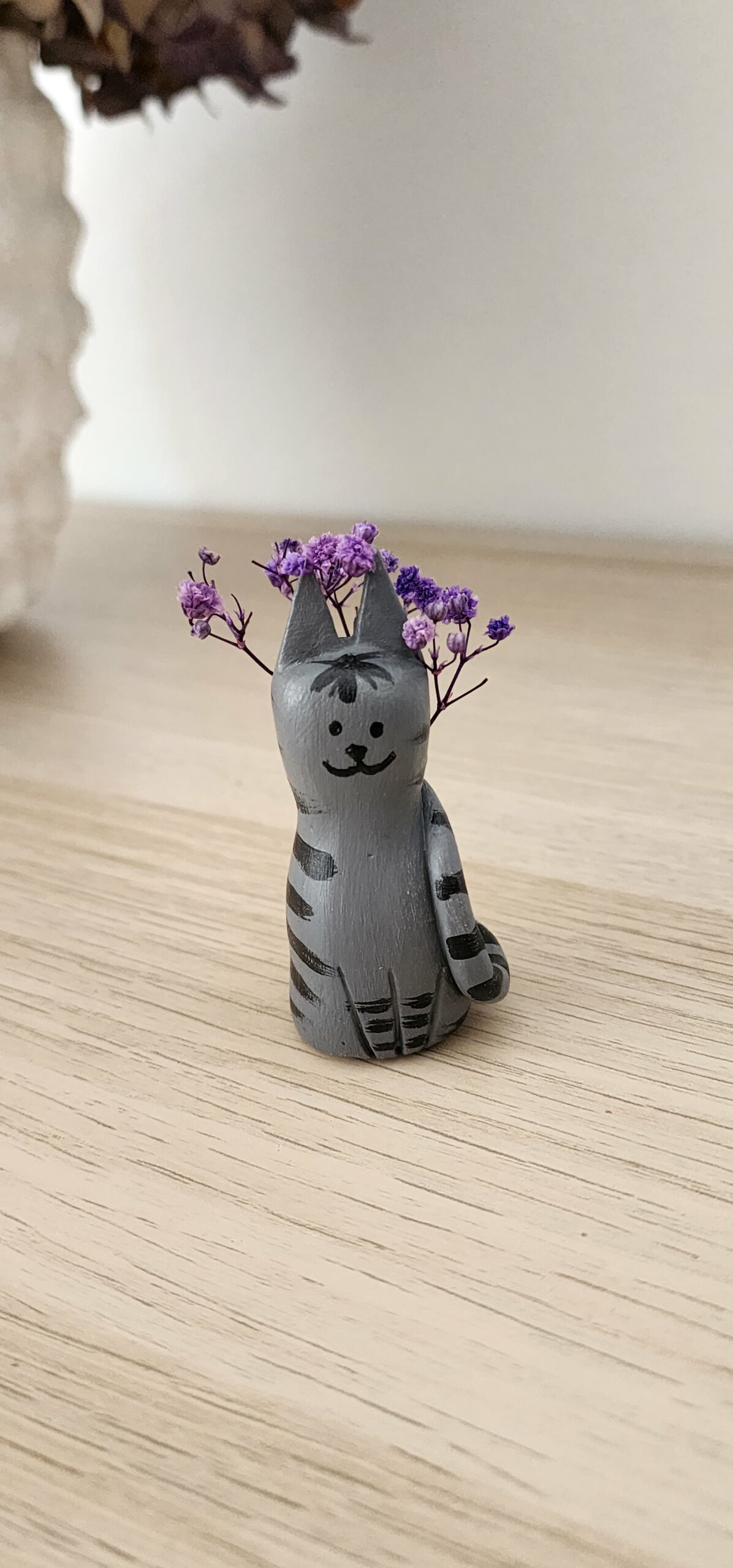 🖐 Création artisanale : Chaque chat est modelé, peint, puis délicatement fleuri à la main – chaque pièce est unique.